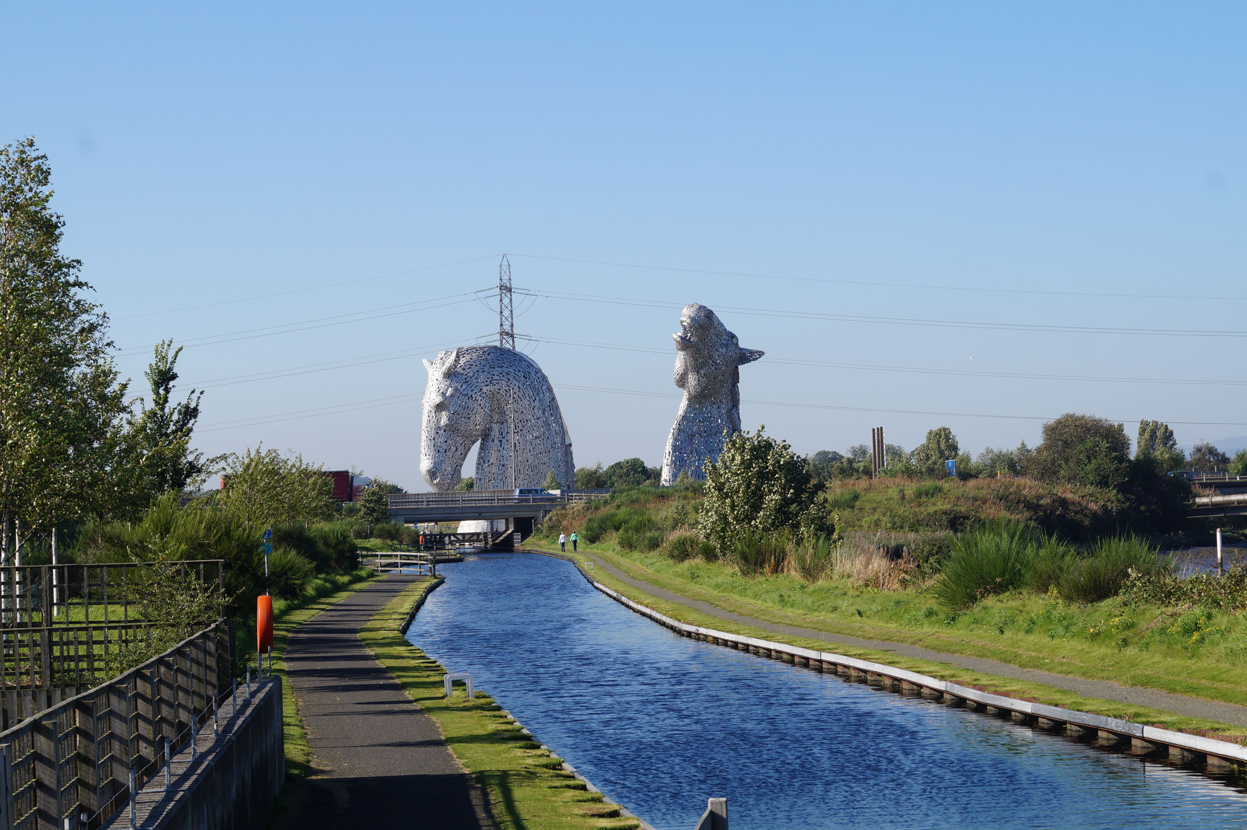 The Kelpies in the distance