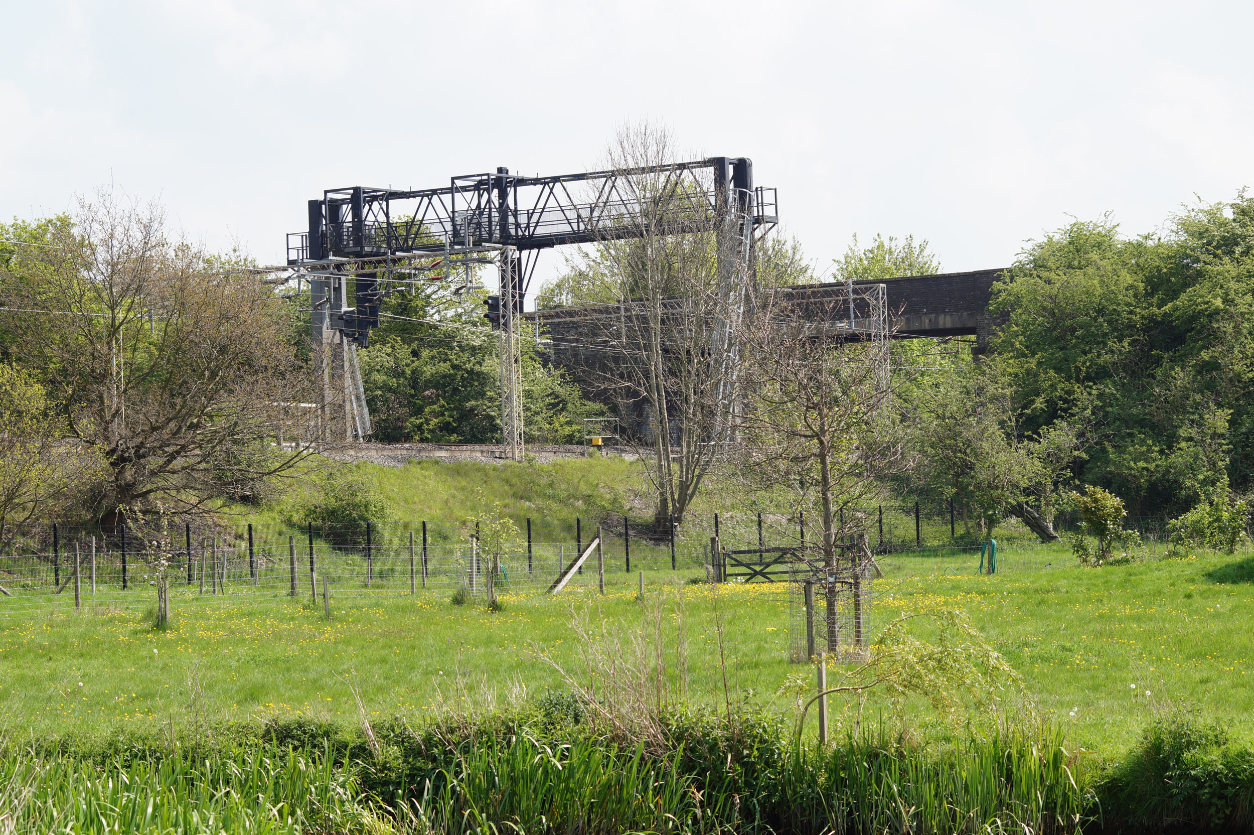 Looking across the canal to the Bullbeggars Lane road bridge over the railway